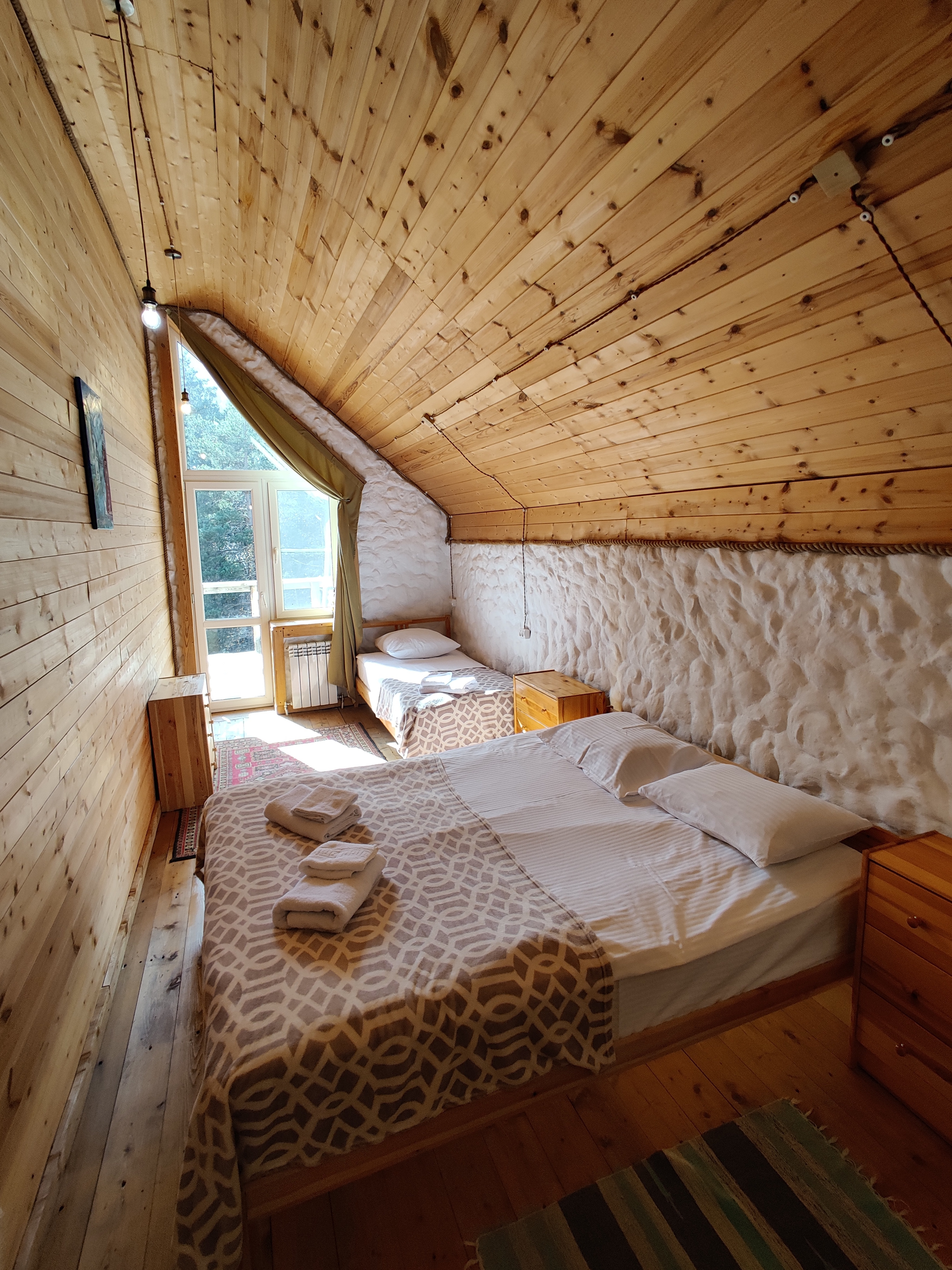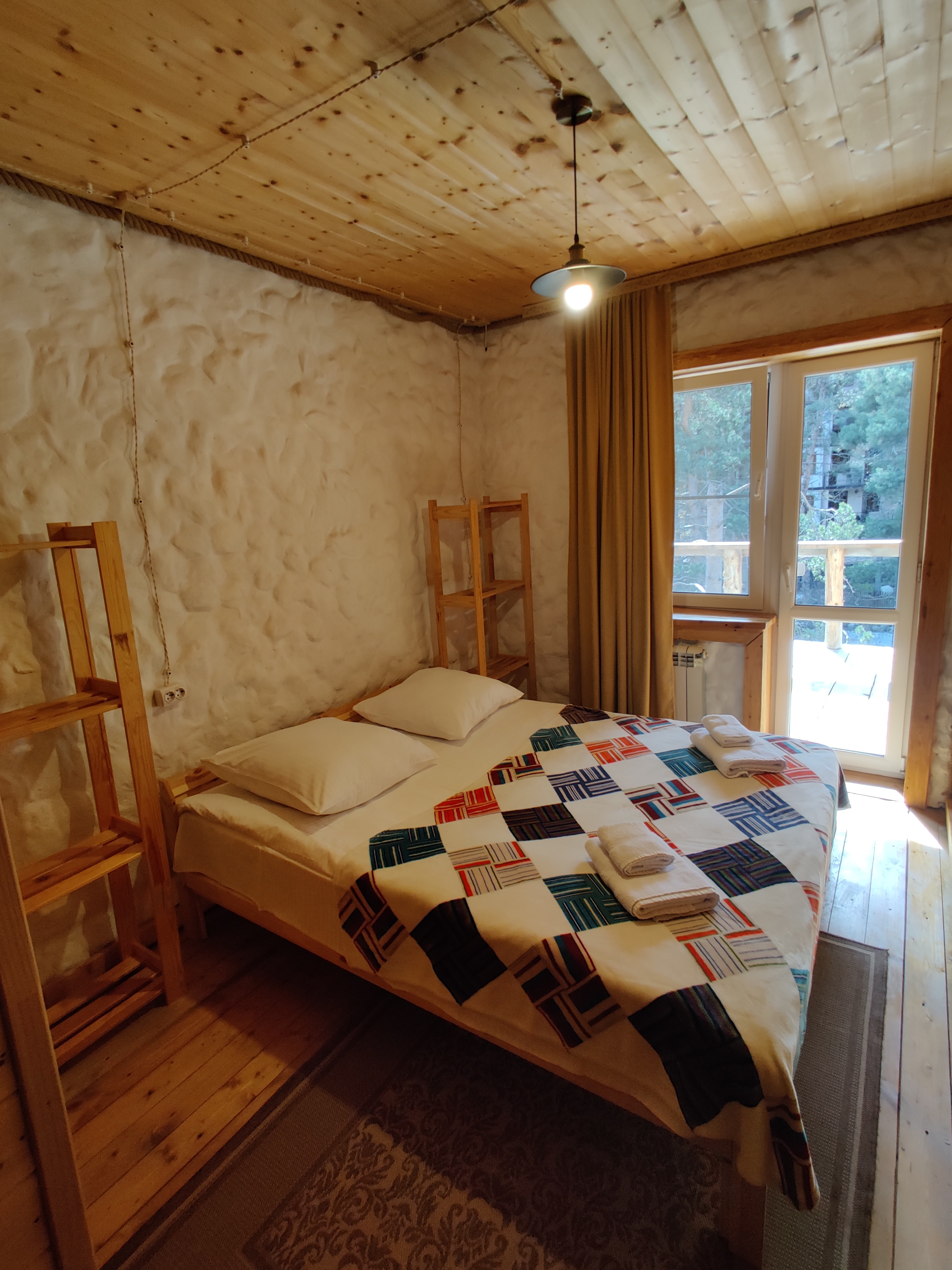 Мы предлагаем вашему внимаю просторный дом на большое количество гостей, где с комфортом разместятся от 1 до 10 человек. Домик оснащен собственным санузлом с душем, а также оборудованной комнатой отдыха. Отдохните на веранде с чашкой горячего напитка и полюбуйтесь захватывающими видами на величественные горы.